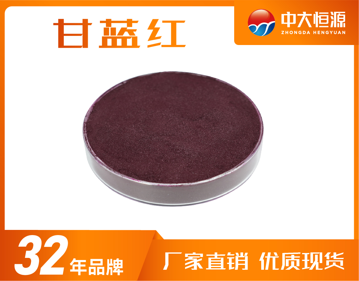 紅色至紫黑色粉末;易溶于水,乙醇、甲醇溶液,不溶于苯、三氯甲烷、油脂等非極性溶劑。溶液呈紅色至紅紫色;酸性條件下(pH2.0—4.0)光、熱穩定性好,色調隨pH的升高從紅色變成藍色。