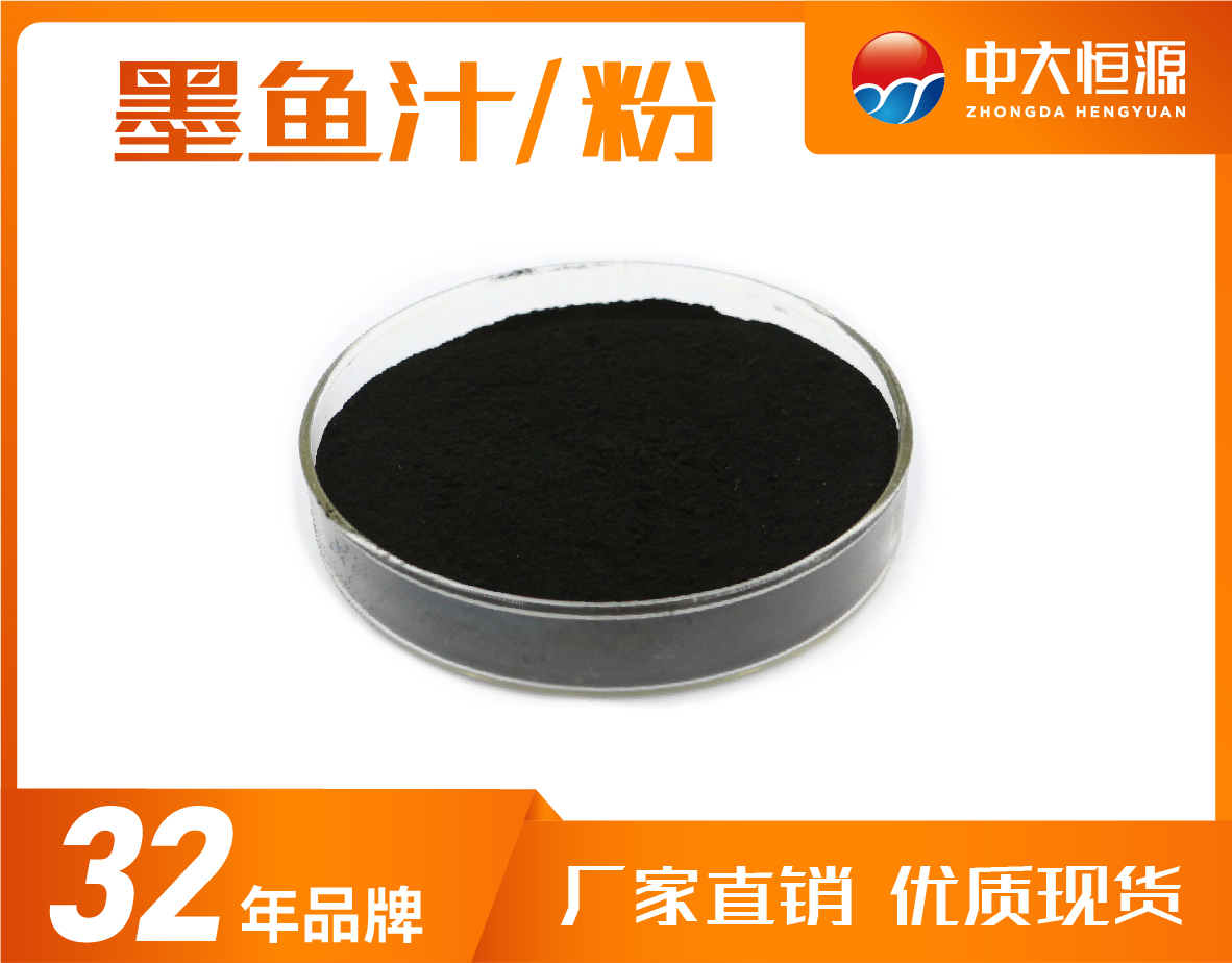 墨魚汁具有較高的營養價值,可以當調味品使用,同時具有一定的藥用價值,此外還可以對食品著色,純天然來源,制作成墨魚汁粉,腥味小,易分散于水,使用方便,可作為調料品食用,同時可對食物著色,適用范圍廣,光熱穩定性好,應用效果黑色。